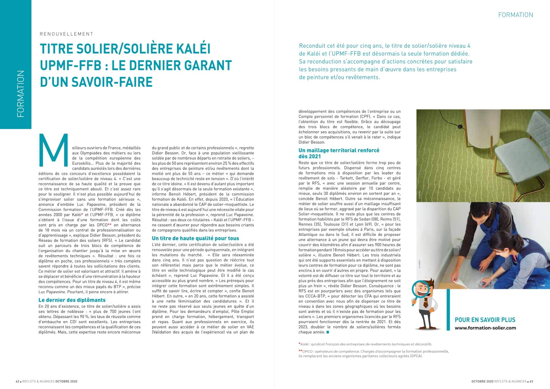 Le titre de Solier/Solière de niveau 4 mis à l’honneur dans le magazine Reflets & Nuances d’Octobre 2020